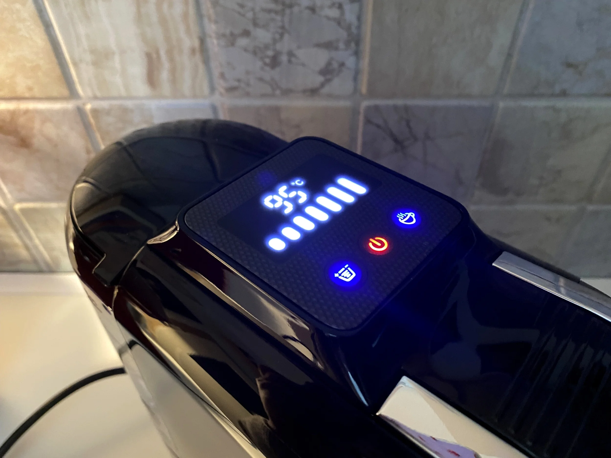 There is a separate button for adjusting the water pressure, you can choose from 7 steps: 30/60/90/120/150/180 or 210 milliliters, but this is usually indicated on the capsule packaging, how much is ideal. You can also vary the brewing temperature to your liking, in a total of 8 steps: 80/85/90/91/92/93/94 or 95 degrees Celsius, but 92 °C is the basic one.