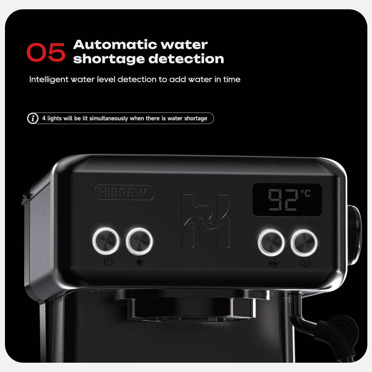 05 - Intelligent Water Shortage AlertThe machine automatically detects low water levels and alerts you with a 4-light indicator. Never run dry mid-brew again.
