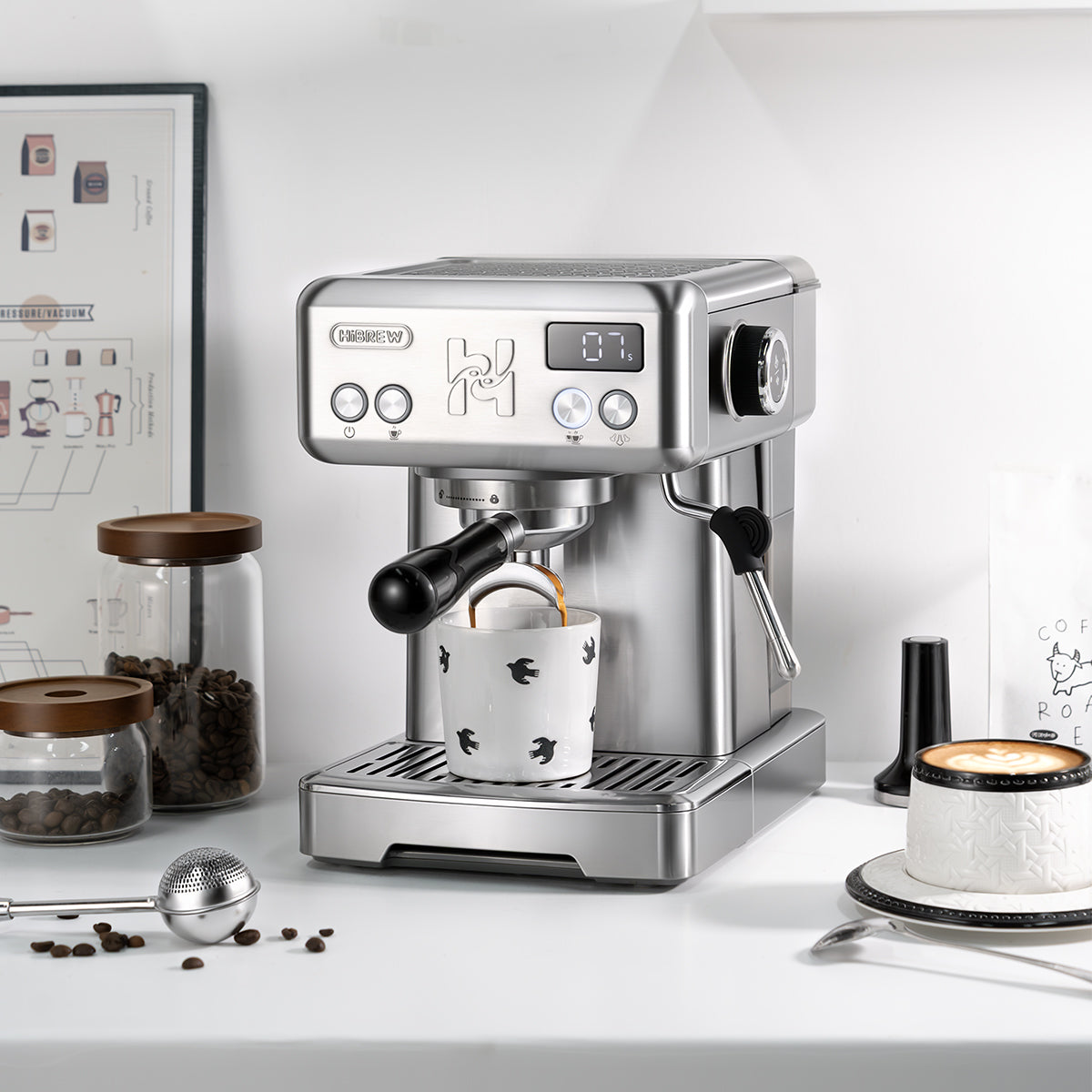 The H10 Semi-Automatic Espresso Machine combines modern technology with traditional coffee craftsmanship to deliver professional-grade espresso at home. With a 15Bar Italian pump, precision temperature control, and a versatile steam wand, you can create cafe-quality espresso, lattes, cappuccinos, and more with ease.