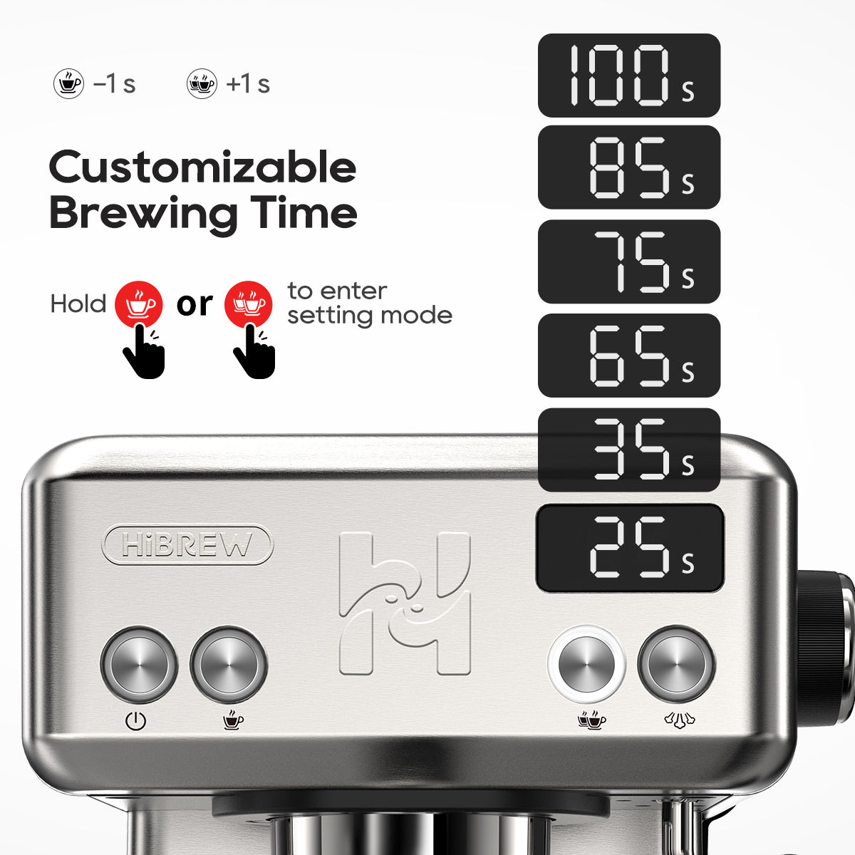 - Adjustable brew time (up to 100 seconds)