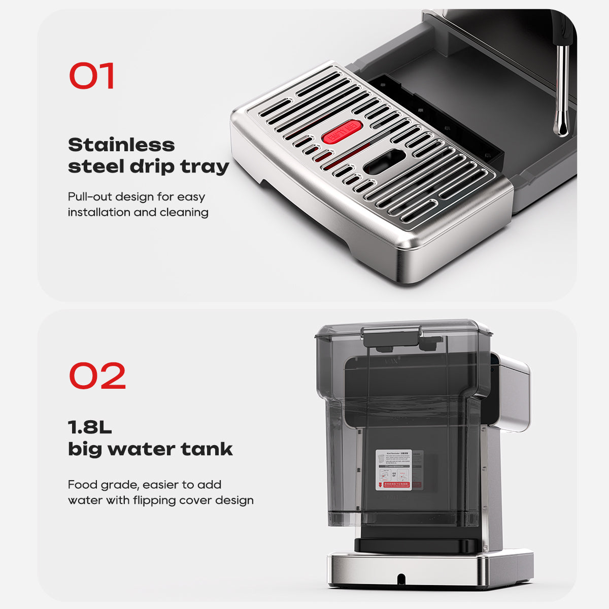 - Water Tank Capacity: 1.8L