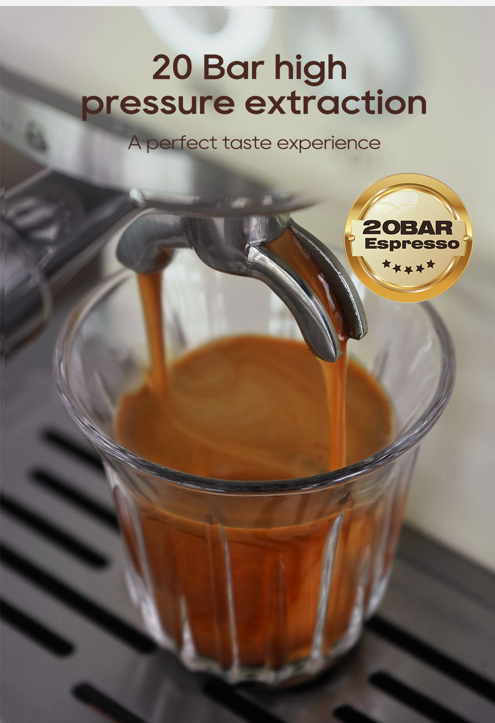 - مضخة احترافية بقوة 20 بار: توفر استخلاصًا ثابتًا وعالي الضغط للحصول على نكهات كاملة وكريمة غنية
