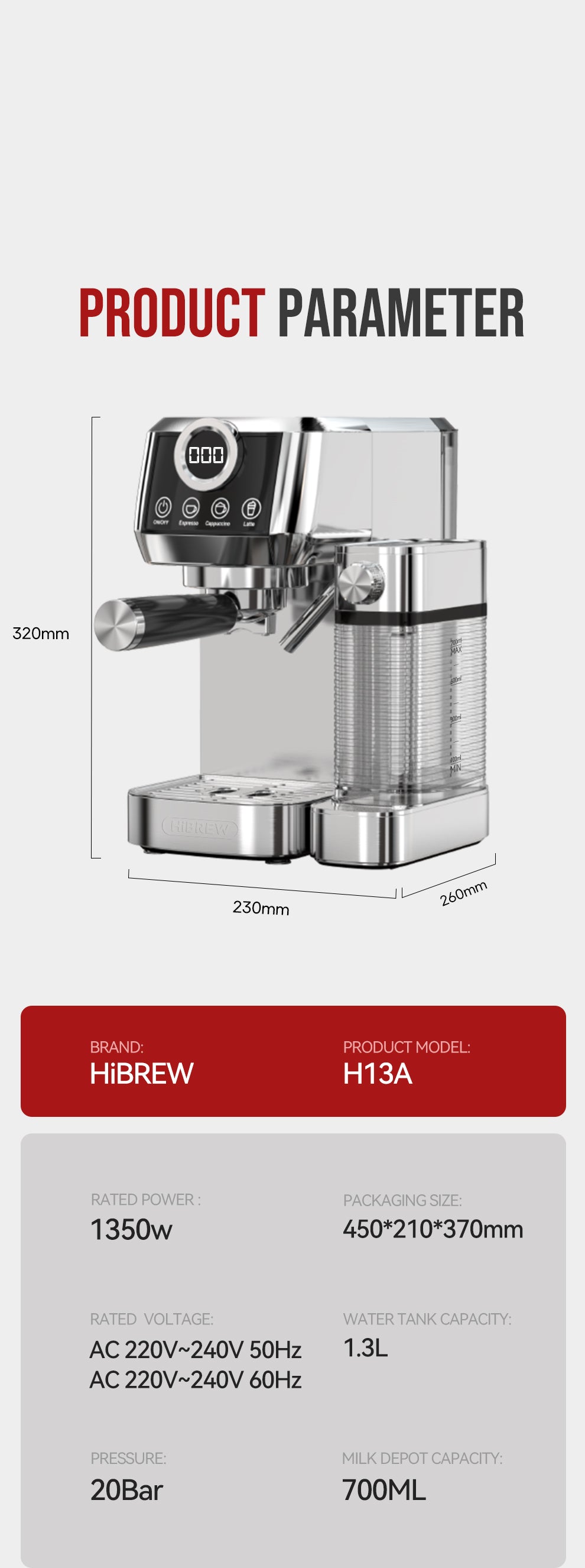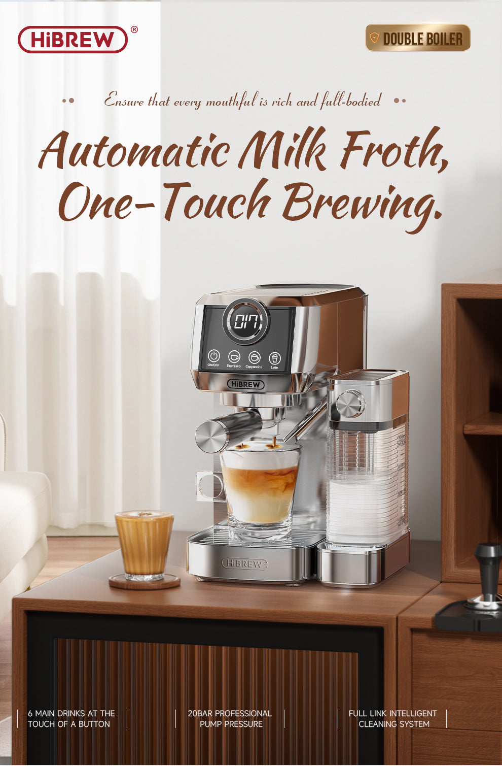 HiBREW Halbautomatische Kaffeemaschine aus Edelstahl H13A
