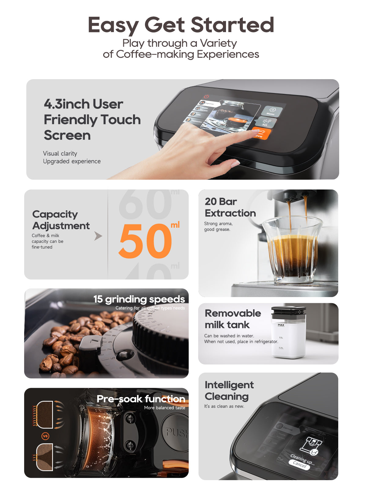 The vibrant 4.3-inch touch screen provides an intuitive, user-friendly experience, making it easy to customize your drink and handle maintenance.