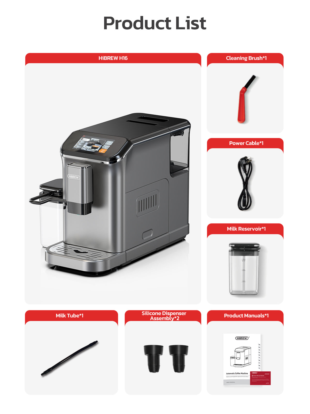 HiBREW Fully Automatic Espresso Machine Cappuccino With Grinder H16